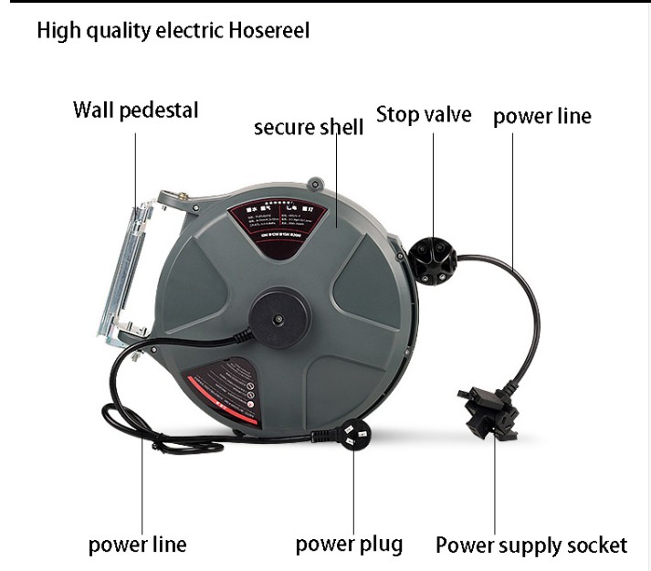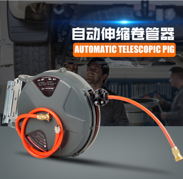 Steel axle, namely pull-stop, automatic recovery, high quality PP shell, light and strong, gift inserts can fix walls and ceilings. Take a look at our physical photographs, air drum and water drum tubes are PU wrapped yarn tubes, corrosion resistance, decomposition resistance, freeze resistance in winter, the tube can withstand 15KG pressure oh! All drums are steel shafts, not plastic ones, which are more solid and durable and have longer service life. And our air drums are equipped with dust blowing guns, air drums with air guns, electric drums with waterproof plugs, light drums with LED lights, water drums with high-end flower sprinklers, fully equipped, can be used after buying and installing.